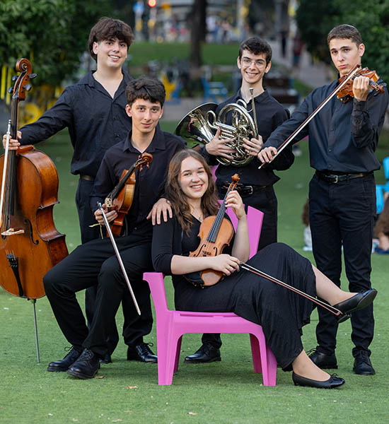 הרכבי תוכנית דיויד גולדמן לנגנים צעירים מצטיינים בקונצרטי שיחה מקוונים למען קשישים וניצולי שואה.