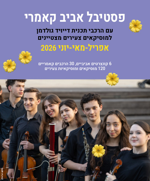 אנו נרגשים ושמחים להזמינכם לפסטיבל אביב קאמרי המסכם את שנת הפעילות של ההרכבים הקאמריים של תכנית דייויד גולדמן לנגנים צעירים מצטיינים של המרכז למוסיקה ירושלים, משכנות שאננים.